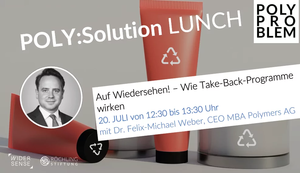 Einzelhändler nehmen Plastikverpackungen zurück, Hersteller holen ihre eigenen Produkte wieder ab: Take-Back-Modelle sind vielfältig. Von einem solchen europaweiten Programm des internationalen Recyclingunternehmens MBA Polymers in Kooperation mit einem großen Kosmetikhersteller berichtet uns im zweiten POLY:Solution Lunch der Deutschlandchef des Unternehmens, Felix Weber.