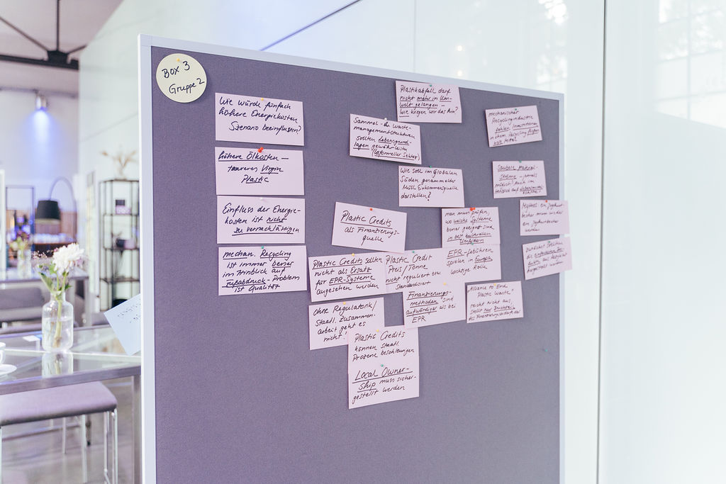 Der Nachmittag in Köln stand dann im Zeichen des offenen Austauschs unter Profis aus unterschiedlichen Sektoren. In drei Denkräumen vertieften die Teilnehmerinnen und Teilnehmer das Gespräch über Chancen und Hürden auf dem Weg zu einem nachhaltigen Umgang mit Kunststoff.